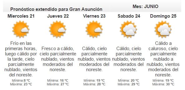 Ya para el miércoles, se esperan condiciones similares para las primeras horas con mínima de 8 grados, mientras que la máxima llegará a los 23 grados.