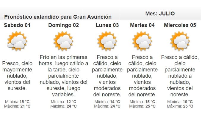 La Dirección Nacional de Meteorología anuncia que este viernes vuelve el clima fresco y se podrían presentar lluvias dispersas.