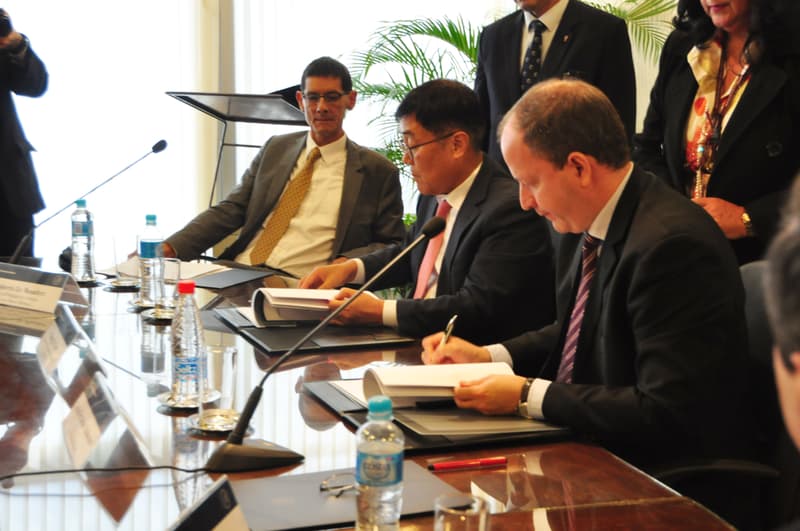 La firma del acuerdo se dio entre Carlos Fernández, presidente del Banco Central del Paraguay y Heung Sik Choo, Director del Departamento de Inversiones del Banco Internacional de Reconstrucción y Fomento (BIRF).