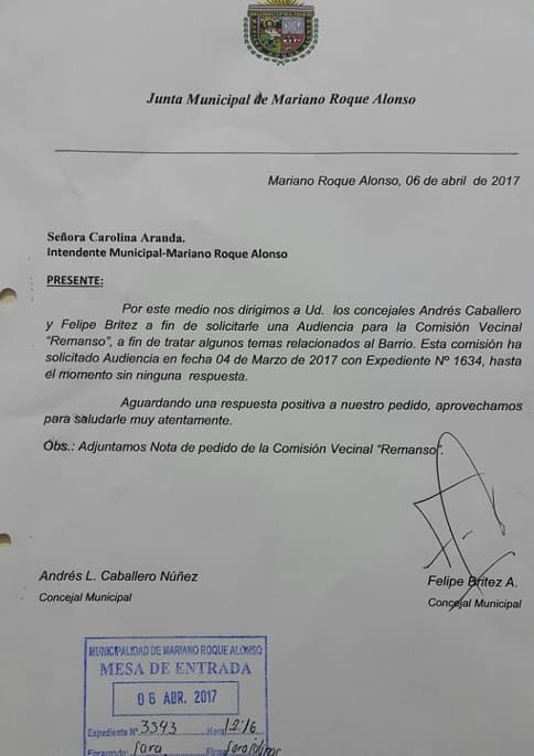 El abogado Hermes Uliambre Frutos, presidente de la comisión vecinal, preocupado por la situación, indicó que remitieron varias notas a la municipalidad, solicitando una solución, pero no recibieron respuestas.