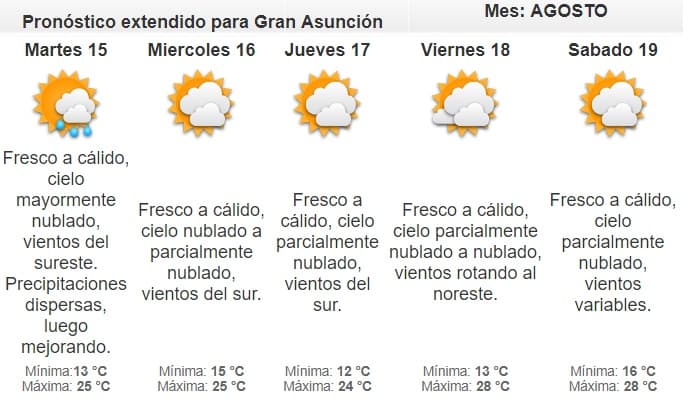 Desde la Dirección de Meteorología anuncian un inicio de semana fresco a cálido. No se descartan precipitaciones.