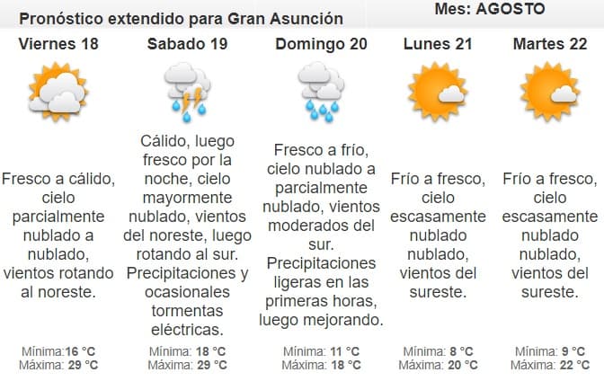 Para este jueves se anuncia un clima cálido con el cielo despejado. No se pronostican lluvias.