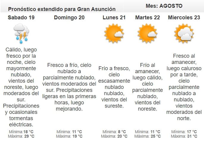 El fin de semana se pronostica el ingreso de un frente frío, también se esperan tormentas.
