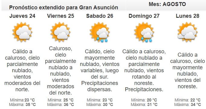 La jornada de hoy se presentará cálida en todo el país, con vientos moderados del Noroeste. Con poca probabilidad de lluvias, según meteorología.