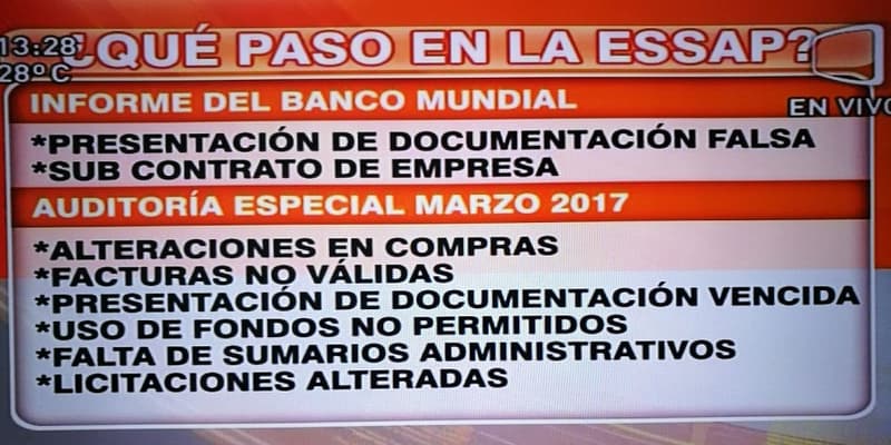 La debacle de la administración de Sarubbi comenzó hace unas tres semanas, cuando el Banco Mundial advirtió ciertas irregularidades dentro de una licitación que fue adjudicada al consorcio Bella Vista.