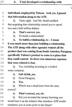 Jason Carpenter: Construir una relación, quiero decir, es mucho más que construir una relación. La ATF junto con otras agencias querían todo el producto que llegaba de América del Sur, Paraguay, específicamente que el producto de Tabesa esté en un sitio que ellos podían controlar. Entonces hubo muchos gastos relacionados a esto.