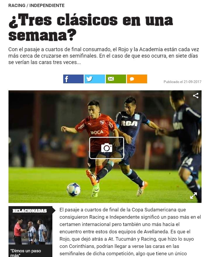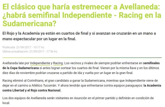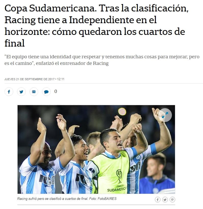 Medios de la Argentina ya se arriesgan a afirmar que se podría dar el clásico de Avellaneda, en las semifinales, es decir la Academia contra el Rojo.