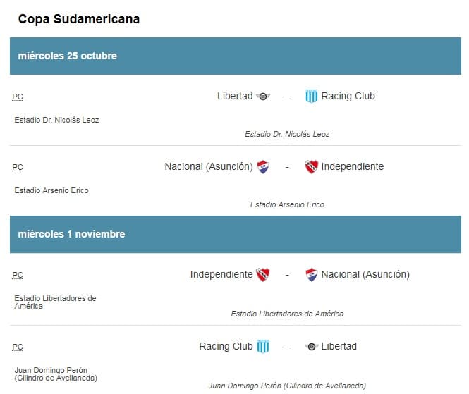Libertad deberá enfrentar a Racing, mientras que Nacional hará lo propio ante Independiente, ambos partidos en el marco de los cuartos de final de la Copa Sudamericana.