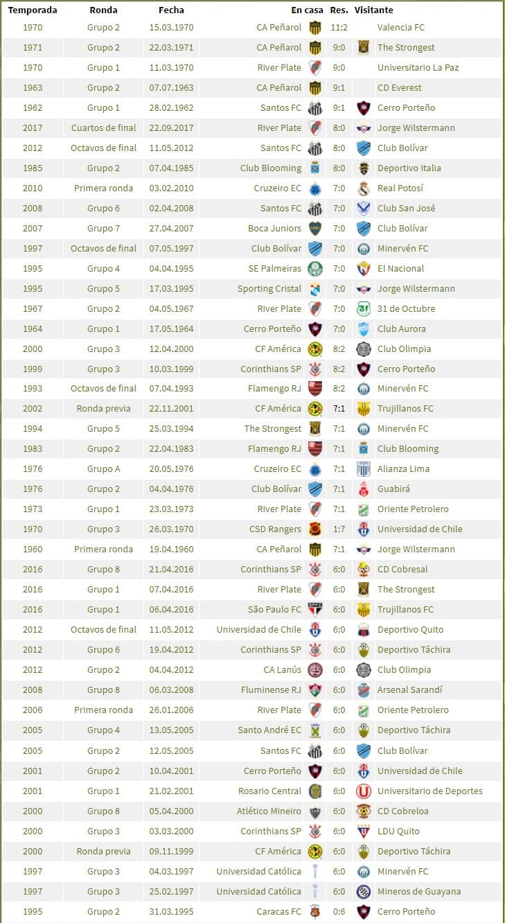 Otras goleadas de equipos paraguayos se encuentran en la siguiente tabla.