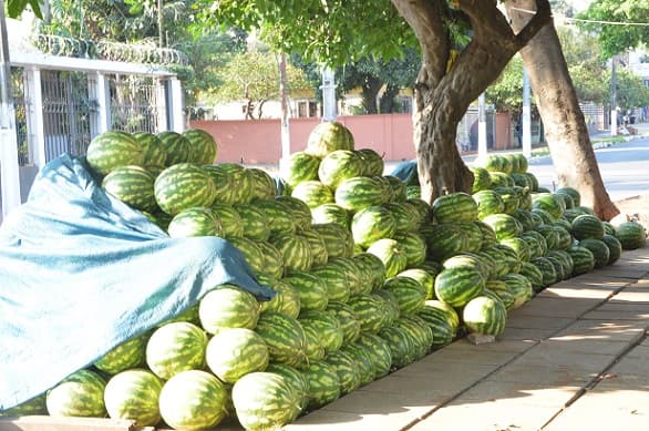 Las sandías pequeñas van desde dos por G. 15.000, en tanto que las medianas tienen varios precios, cuestan G. 10.000 y G. 15.000.