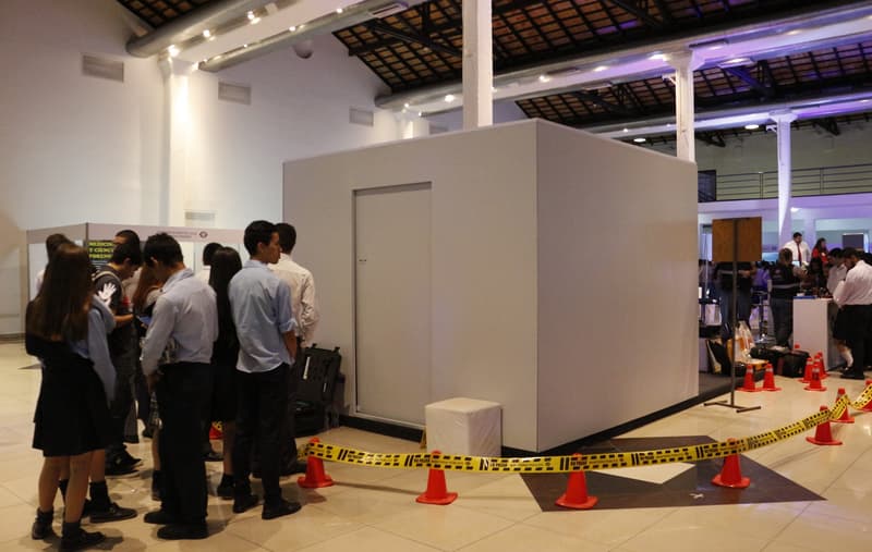 El stand del laboratorio forense es uno de los principales atractivos, ya que los visitantes pueden ingresar al cuarto oscuro entre cuatro personas con un guía, y ven en su interior como se identifican pruebas en los lugares del crimen, entre otros.