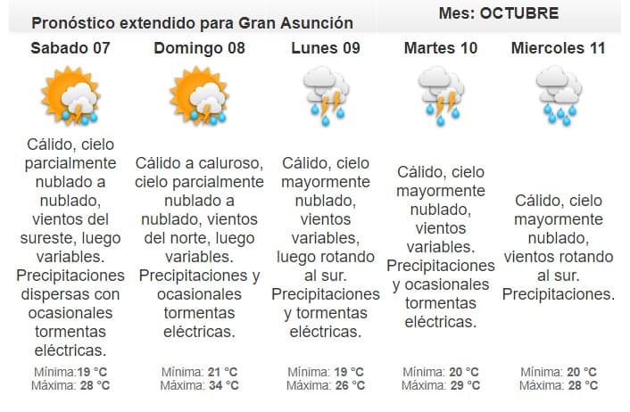 Existe alerta de tormentas eléctricas, con ráfagas de vientos fuertes y ocasional caída de granizos, que afectará al sur del Guairá, Caazapá, Itapuá, Misiones, centro y sur de Paraguarí y Ñeembucú.