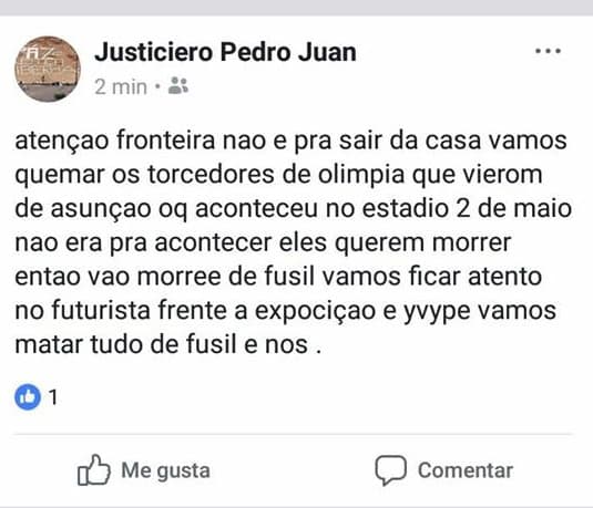 Hinchas de Olimpia, bajo amenaza en Pedro Juan