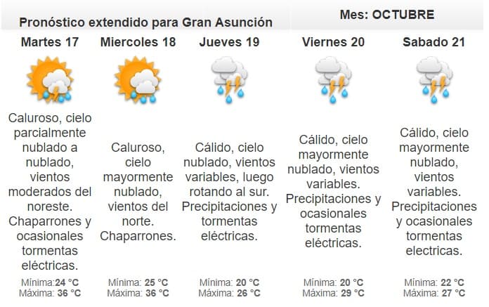 Ñeembucú y Misiones podrán ser afectados por ocasionales tormentas eléctricas.