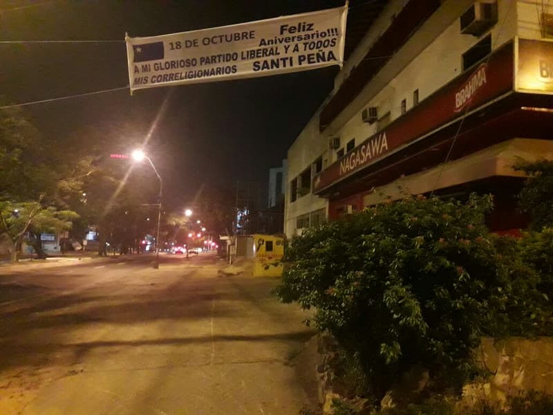 Varios pasacalles aparecieron durante la noche del martes y primeras horas del miércoles con supuestos mensajes de Santiago Peña. El diputado Carlos Portillo también aportó lo suyo y dijo: “No puedo dejar de olvidarme de un gran correligionario”, nombrando al precandidato colorado.