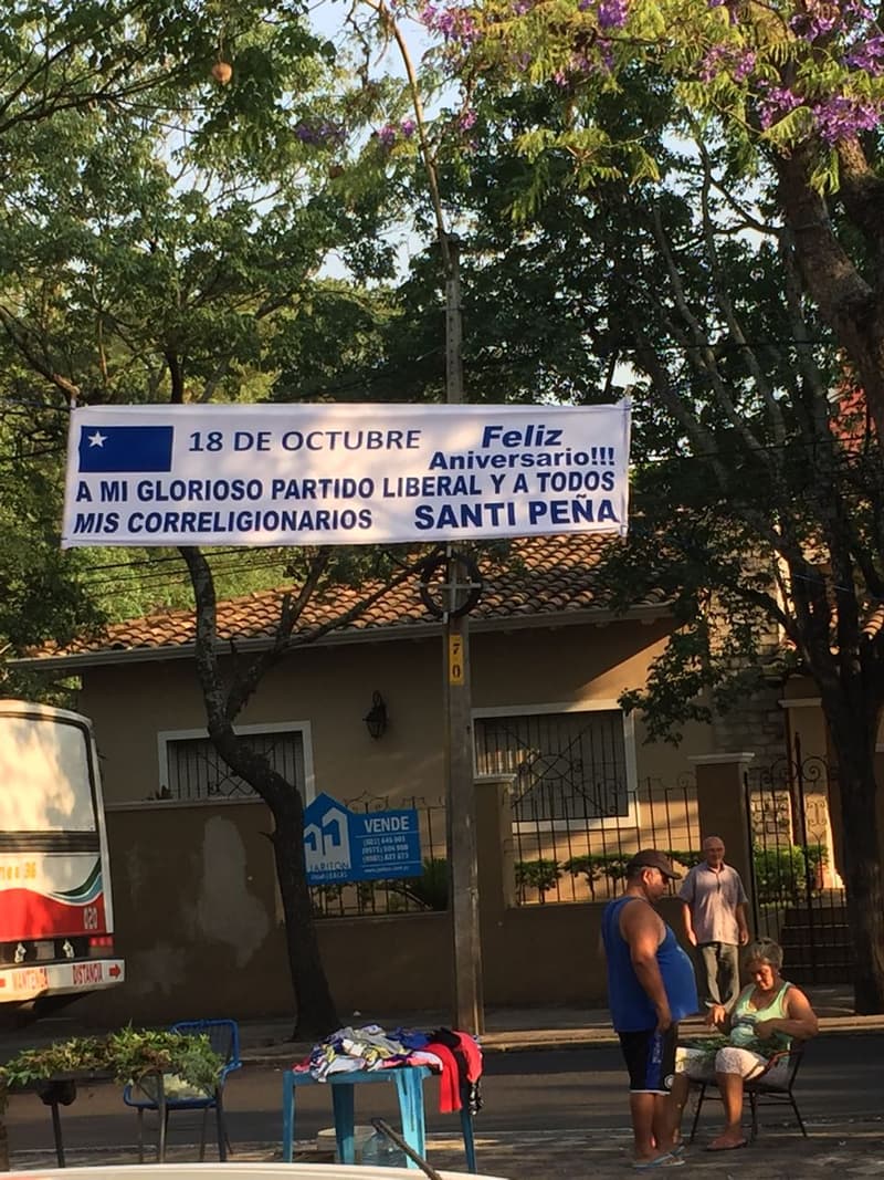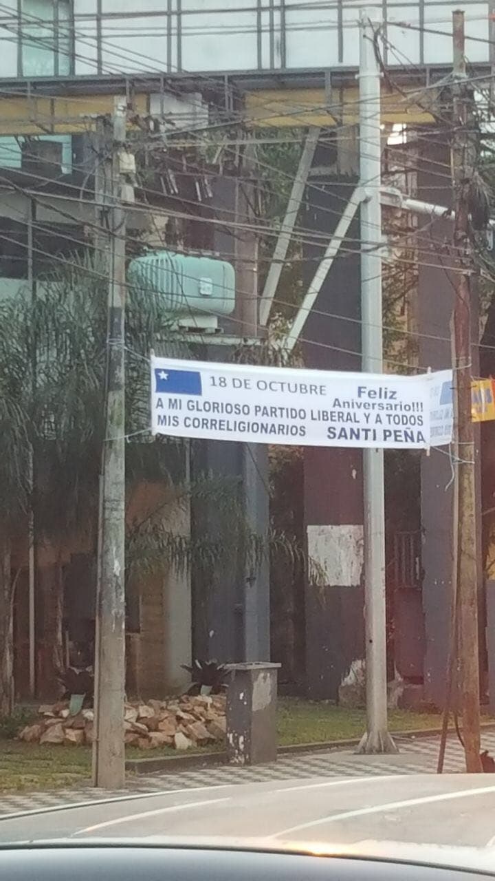 “Feliz Aniversario!!! A mi glorioso Partido Liberal y a todos mis correligionarios”, es lo que se expresan los pasacalles que están “firmados” por Peña.
