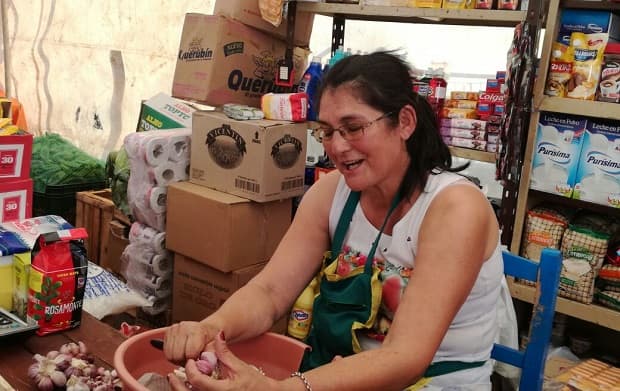 Agustina Ledesma de 57 años trabaja en el mercado desde hace 30 años, tiene cinco hijos, todos mayores, a quienes crio en los pasillos del Abasto.