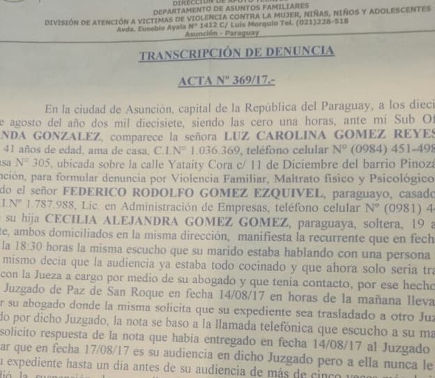 “La jueza anterior había impuesto medidas de convivencia, como mi marido no cumple, me vi obligada a ir a reclamar el hecho a la comisaría, donde no quisieron tomar mi denuncia. Dicen que ellos no son niñeros de nadie”, explicó Carolina.