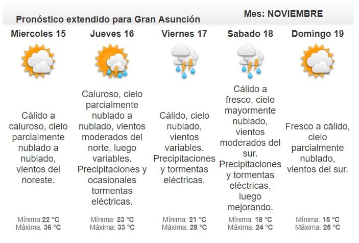 La máxima alcanzada será de 34°C, con bajas probabilidades de lluvia y una predominancia del ambiente sumamente caluroso.
