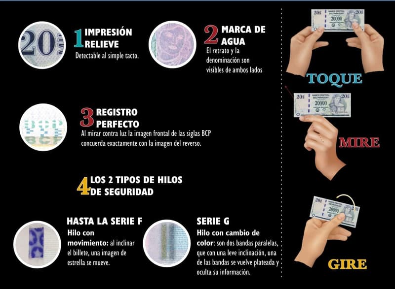 El Banco Central del Paraguay, como también la Policía Nacional emitieron recomendaciones para identificar billetes de G. 20.000 que sean falsos.