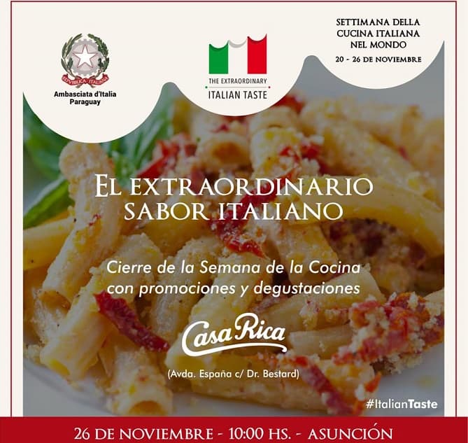 El 26 de noviembre, 12 restaurantes de Asunción, Encarnación y Ciudad del Este, ofrecen en su menú un plato exclusivo con ingredientes de origen italiano certificado y garantizado.