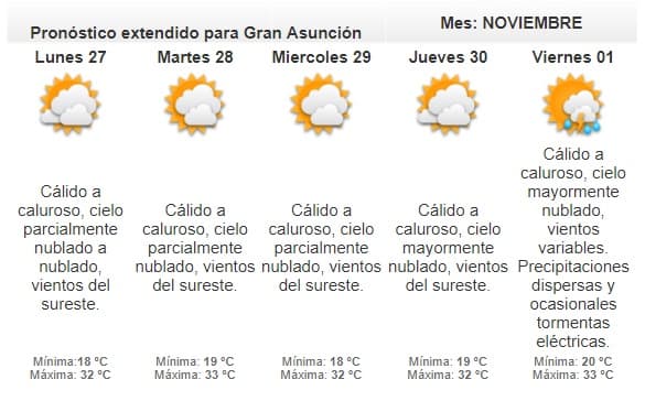Se anuncian algunas lluvias dispersas sobre el extremo sureste, este y norte de la Región Oriental, como así también sobre el centro, norte del Chaco.