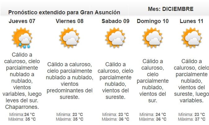 La jornada se presentará cálida a calurosa, con vientos variables. No se descartan las tormentas eléctricas.