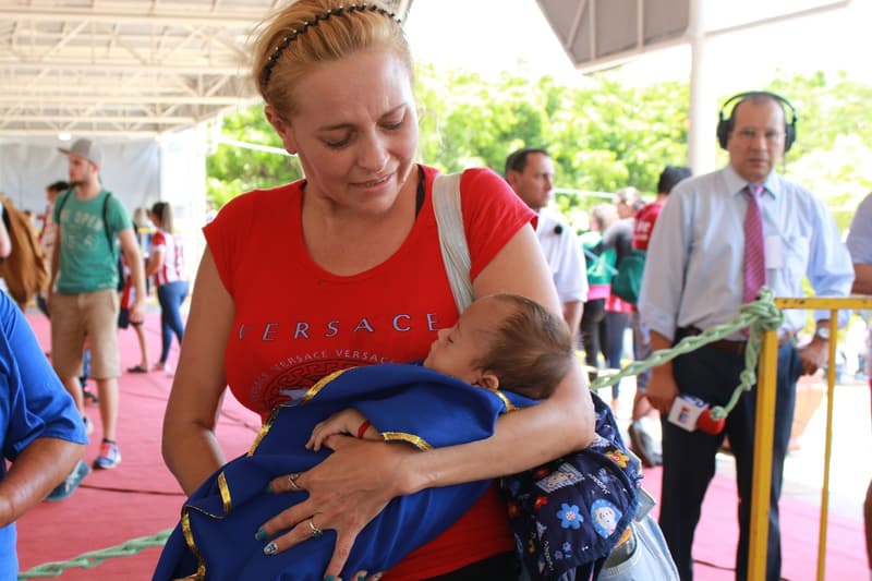 Luego está Valentino, un pequeño valiente como su nombre lo dice que nació con un trastorno del pericardio y que vestido con el manto azul de la Virgen fue a encomendarse a ella para que la cirugía de corazón que va a tener le salga todo bien.