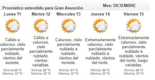 La máxima estimada será de 36 grados en Asunción.