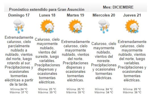 La máxima estimada será de 38 grados en Asunción.