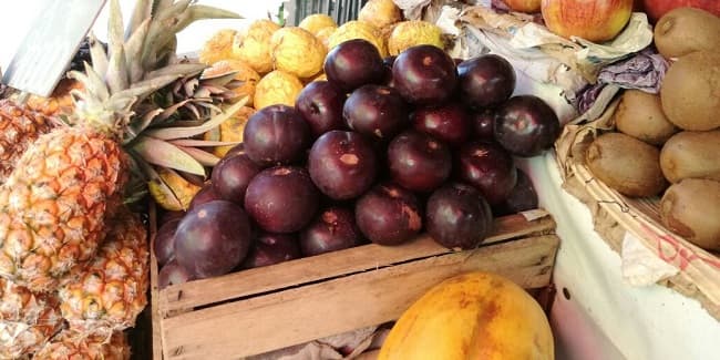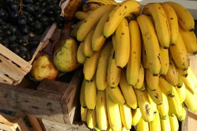 Las bananas están a G. 120 mil la caja y G.15 mil la docena. Las ciruelas a G. 15 mil el kilo y el durazno a G. 20 mil.