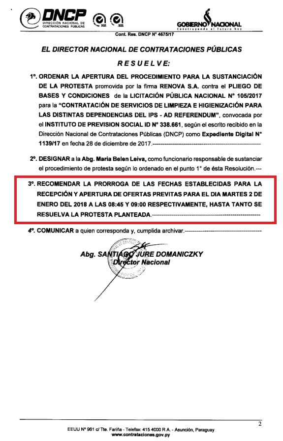 El documento de la DNCP se encuentra abajo: