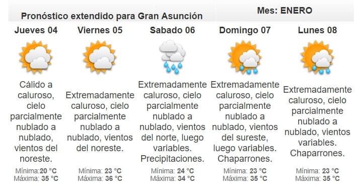 La jornada se presentará extremadamente calurosa. No se anuncian lluvias.