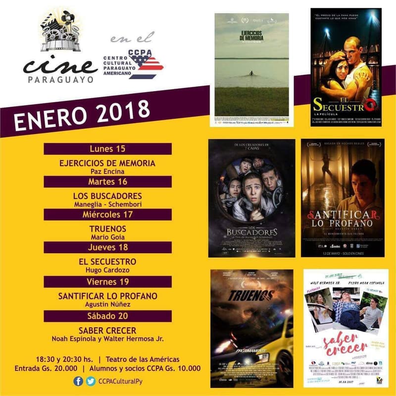 El festival de cine inicia el 15 de enero y se extenderá hasta el sábado 20. Las entradas al público en general son de G. 20.000 y para alumnos y socios del CCPA a G. 10.000. Los horarios de las proyecciones son 18:30 hs. y 20:30 hs.