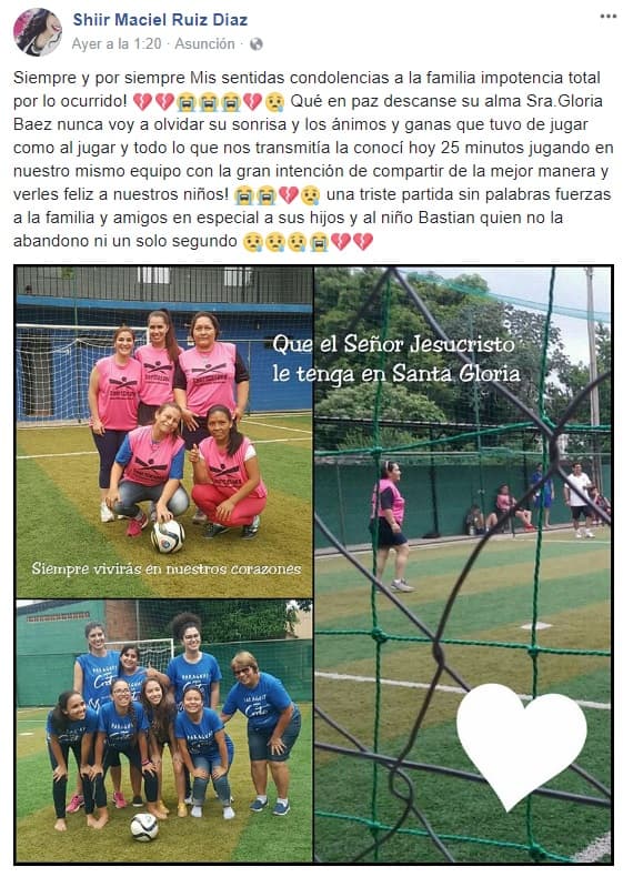 Durante una hora de suplicio, la mujer Gloria Báez quien se desvaneció en el campo de juego falleció.