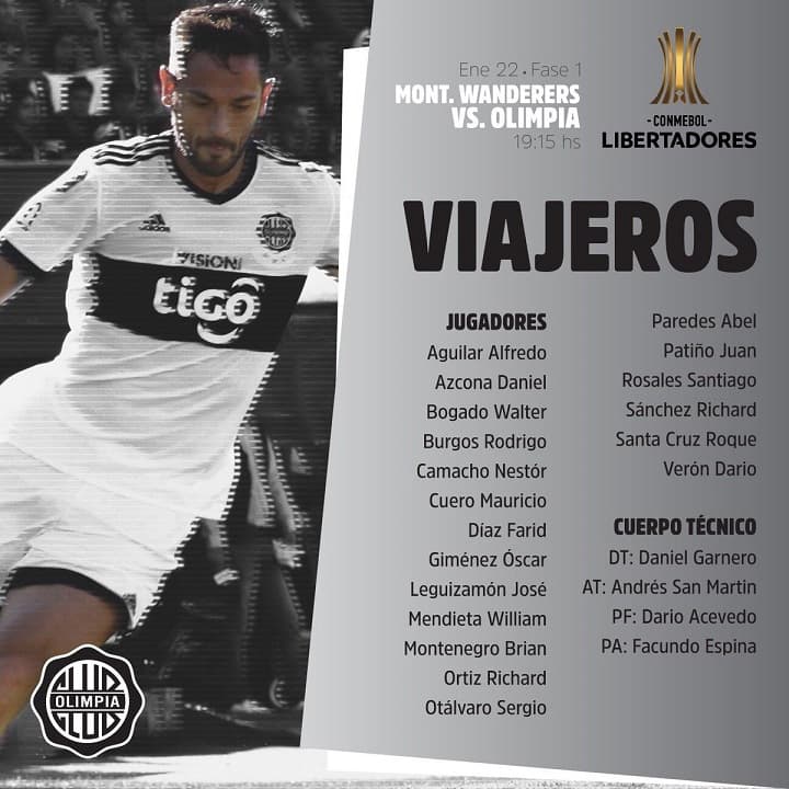 El plantel del Club Olimpia partirá al mediodía de este domingo a Montevideo. Jurará su primer partido en el marco de la Copa Libertadores.