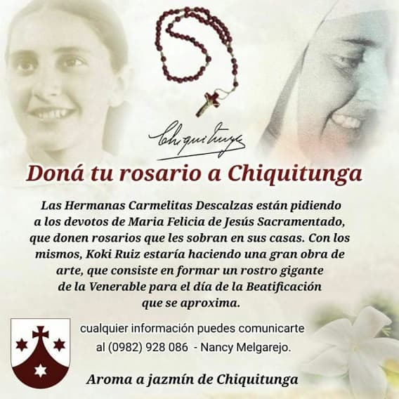 Las hermanas de las Carmelitas Descalzas solicitan a todos los paraguayos que poseen algún rosario antiguo, donar para que el artista pueda formar el rostro de Chiquitunga con dichos elementos.