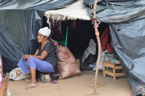 Los nativos se encuentran viviendo bajo carpas precarias, por lo que cuando llueve sufren porque quedan en el agua.