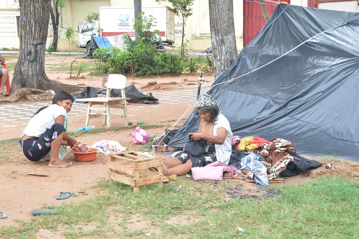 Mencionó que son 15 familias las que se encuentran acampando en la plaza y apela a la solidaridad de la ciudadanía.