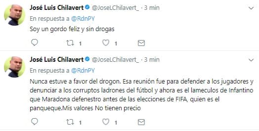 Todo comenzó con un cruce en Twitter entre Chilavert y sus seguidores en el que hizo alusión a la adicción del argentino.