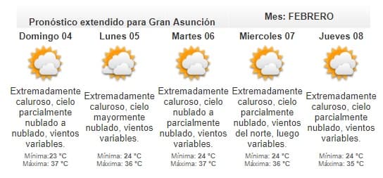 La máxima estimada será de 36 grados en Asunción.