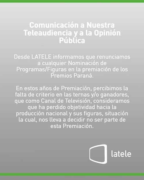 Dos canales del Grupo Vierci renunciaron a participar de los tradicionales Premios Paraná, que se entregarán en mayo.