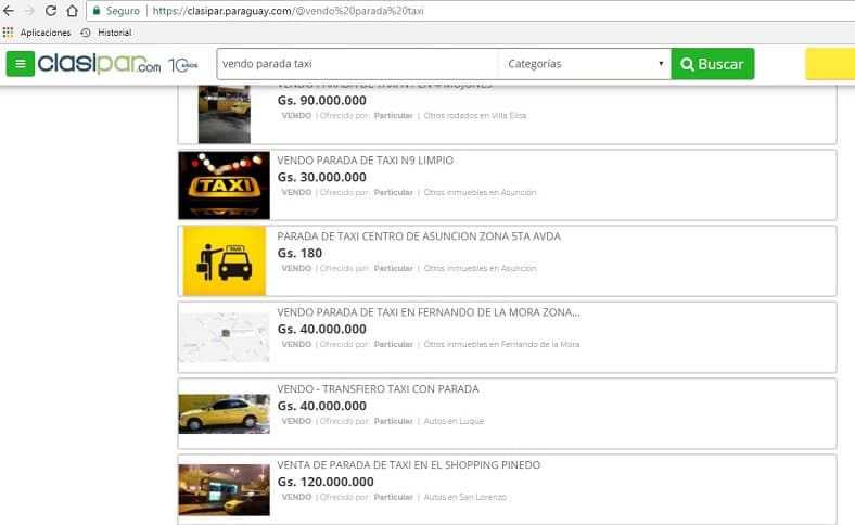 Uno de los puntos analizados fue la compra y venta de las paradas de taxi, que se comercializan incluso a través de páginas locales de clasificados en la web, como se puede ver abajo.