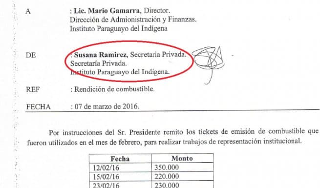 Los documentos a los que accedió Última Hora, dan cuenta de que la mujer, por ejemplo, se encarga de presentar las rendiciones de combustible de su novio.