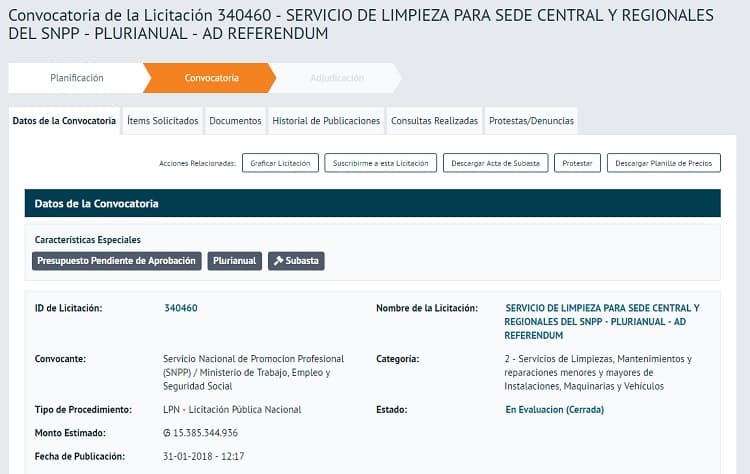 El pasado viernes se dio por iniciado la última parte de una nueva licitación, esta vez por un plazo de 24 meses y más de G. 15 mil millones, como se puede ver en la imagen de abajo: