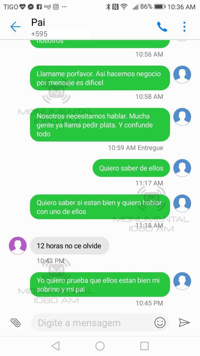 En conversación con la 1080 AM, explicó que incluso tres semanas después del supuesto secuestro, los criminales seguían manteniendo comunicación con la familia.