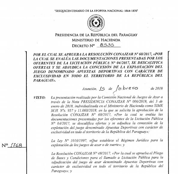 Luego del proceso licitatorio encarado por la Conajzar y atacado por la Contraloría General de la República, resultó ganadora la firma Daruma Sam, que opera con la denominación comercial Apostala.