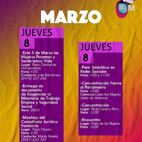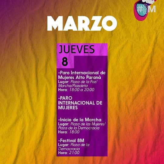 Con frases como “Si nuestras vidas no valen produzcan sin nosotras” o “Vivas nos queremos todas”, la organización Paro de Mujeres Paraguayas presenta una serie de actividades que se desarrollarán durante todo este jueves y continuarán durante todo el mes de marzo.
