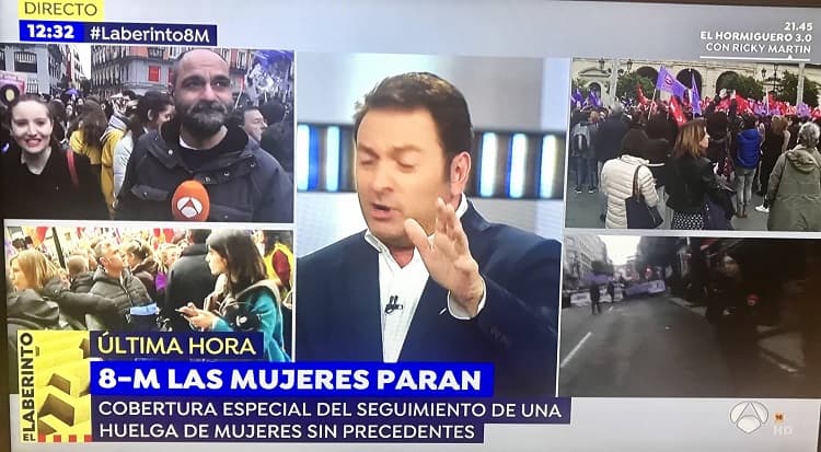 No obstante, programas como Espejo Público, Hablar por hablar y La sexta fueron conducidos, por primera vez, por hombres en reemplazo de sus compañeras que asistieron al paro internacional de mujeres, buscando reivindicar sus derechos.