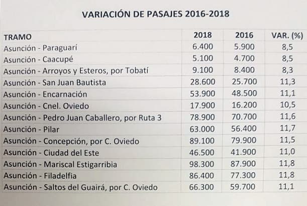 Según informes, el incremento estaría entre G. 400 a G. 10.400, dependiendo de la zona.